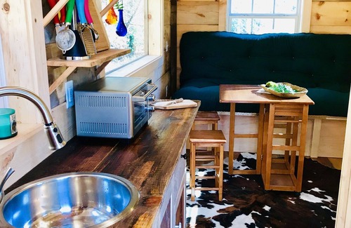 - Romantic Tiny Home in Goat Farm w King Bed Outdoor Tub Sauna