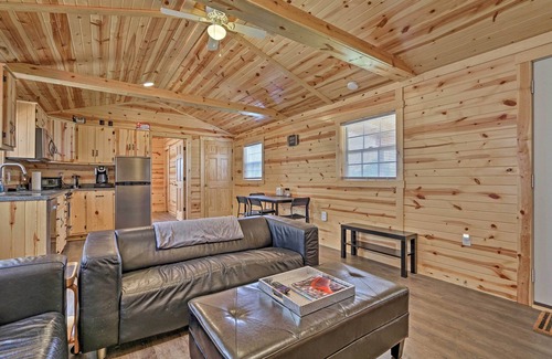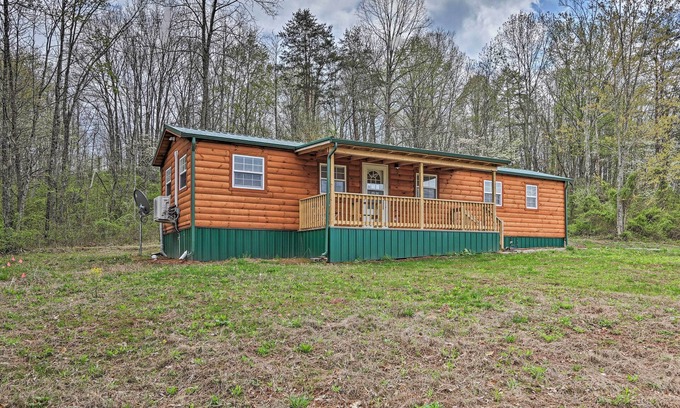Calling all nature enthusiasts! Book this 2-bedroom, 2-bath vacation rental and experience the outdoors like never before. Sitting on 100 -acres of land, this cabin provides a cozy, traditional wood interior with modern amenities such as a Smart TV, a fully equipped kitchen, and warm showers. Step, run, or ride outside and follow the marked trails that lead you through the beautiful thicket of trees. After a long day of exploring, unwind to the sizzling charcoal grill on the furnished back deck.