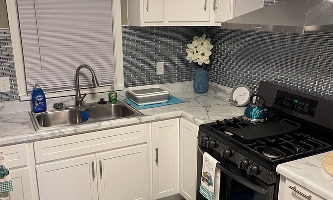 You have a one car carport, driveway, and street parking all free. Gated yard for your fur babies, and kids outdoor playtime. Exterior 360 degree surveillance to provide a peace of mind for guests and hosts during stays. We hope you'll enjoy your stay at our house.