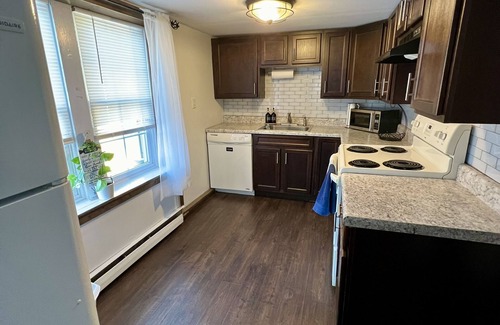 The first floor apartment is equipped with a full kitchen, two bedrooms, laundry room and a nice dining and living room space with one bath and a laundry room! There is shared parking with another apartment and a 1/2 acre of land! Boyertown has a lot of history to explore!