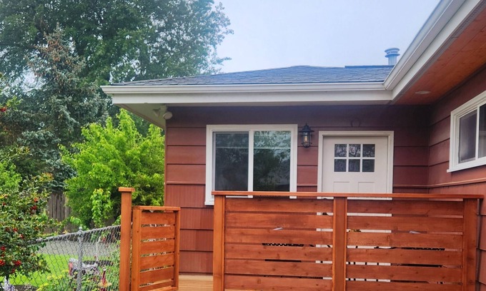 This sweet studio in Mount Vernon has everything you need to be comfortable. It features a new queen bed and a convenient futon for extra guests, or the dog. With WiFi, heating, and AC, guests can stay connected and comfortable throughout their stay. The bathroom is equipped with all the essentials you need, but no tub. A private patio is all yours, plus a fully fenced yard for your pooch. Enjoy all that Mount Vernon has to offer when you stay at our place. We're 5 minutes from downtown Mount Vernon, blocks from the regional hospital, 4 minutes from Little Mountain Park and hiking trails. Plus all of the Skagit Valley stretches before you, tulips, beaches, restaurants, shopping, all just minutes away.