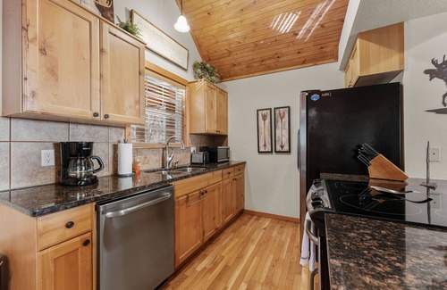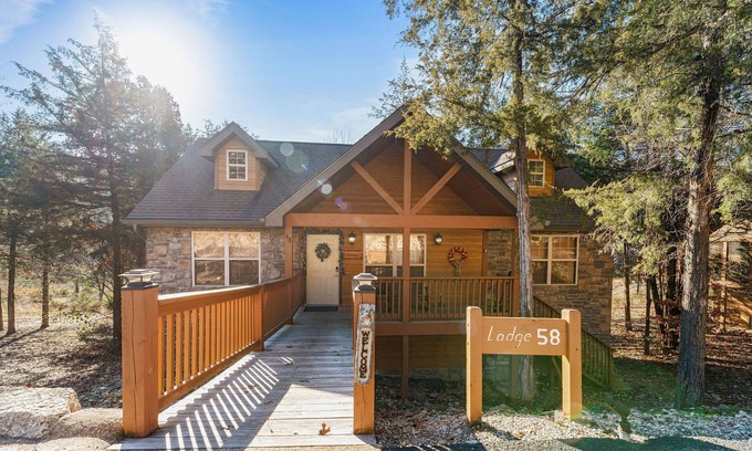 Nature, rejuvenation, and worry-free days await at this 2-bedroom, 2-bath Branson West vacation rental. Situated in the StoneBridge Resort, this step-free entry cabin includes access to pools, tennis/pickleball courts, a catch and release lake, fitness center, and more! Make the most of your Missouri getaway by visiting Silver Dollar City and Branson Landing, or head out for a fishing trip on Table Rock Lake. If you choose to stay home, relax on the screened-in porch, cozy up by the fireplace, or prepare a warm meal in the kitchen