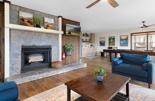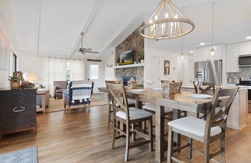 The amenities at the Bungalow are designed to ensure comfort and convenience for you and your guests. Enjoy gathering around the outdoor fire pit or cooking up a feast on the gas grill while soaking in the serene surroundings. Inside, you'll find a fully equipped kitchen and a cozy game room with a pool table, perfect for entertaining. Each of the four master bedrooms boasts its own private bathroom, ensuring privacy and relaxation for everyone. Additional features include smart TVs, a second kitchenette, and two indoor fireplaces that create a warm and inviting atmosphere.