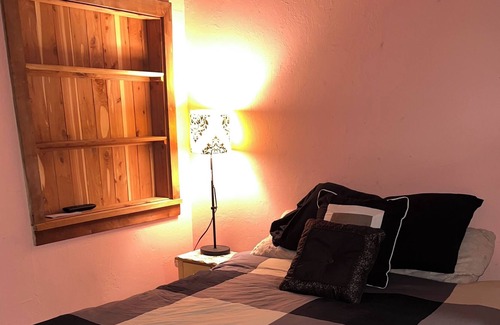 Private quite bungalow(pool house)on family homes property. Full use of patio, with fireplace,swimming, pool, and hot tub. This cottage can sleep up to nine at $20.00 personextra. 125.00 for 2 peoplewith a 2 night minimum stay.people. Full kitchen and all amenities large shower. Private patio. 145.00 per night for 4 people. (Owner special)If more then 4 people owner must know and an additional fee pre person will be charged. If you want to use the hot tub, let the owner know ahead of time to heat it up. If you have guest over and want to have a party in the patio, the owner must know and prepare for that. no pets and no children please . Smoking must be done outside .Carport for two vehicles. Great AC. A perfect small home away from home.. .