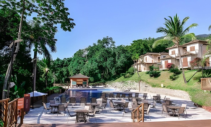 The Yacamin Bungalow is the perfect getaway for families or couples looking for an unforgettable experience in Ilhabela. With a king-size bed, blackout curtains for peaceful nights and a private hot tub with an incredible view, the space offers total comfort and relaxation. The balcony overlooking the pool creates the ideal setting for moments of rest. The full kitchen and sofa bed for children make the bungalow practical and welcoming. In addition, the condominium offers a wide range of leisure facilities, with swimming pools, gym, sauna and much more.