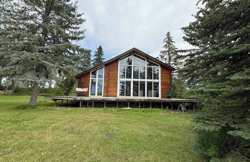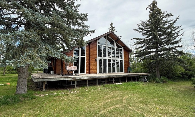 Tucked 7 minutes from Okotoks, Alberta, this charming log cabin on 2 acres offers a peaceful getaway. Surrounded by trees and birds, it’s perfect for R&R with no neighbors. Enjoy prairie views and the Rockies in the distance. The cozy cabin has a fireplace, comfy couches, big windows, 3 bedrooms, a kitchen, and a bathroom. Relax on the deck or by the fire pit. Wi-Fi’s available, but unplug and roam the evergreens. Near Okotoks’ shops, it’s a rustic, fun escape!