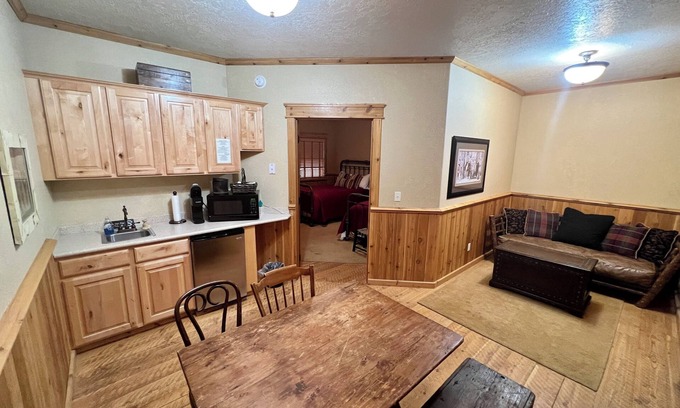Escape to the Almo Inn, perfectly located near the breathtaking City of Rocks National Reserve and Castle Rocks State Park—renowned for world-class climbing, stunning nature, and scenic hiking trails. Suite 2, "Tombstone," offers 500 sq. ft. of comfort with a King bed, a Full bed, a full bath, and a convenient kitchenette. Relax on your private deck with rear access after a day of adventure. Book your stay today and experience the beauty of Almo!
