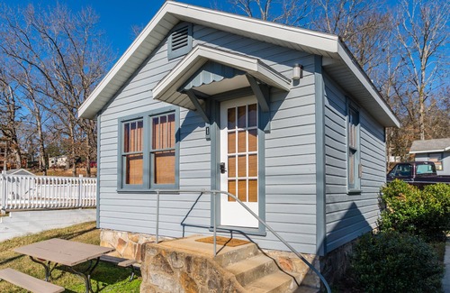 This "COZY" studio cabin is located around the corner from Lake Taneycomo! With beautiful views of the Ozark trees, the lake, and more. Step outside morning or night and watch the local deer. Within walking distance you will have La Pizza Cellar, White River Coffee house, and fishing on Lake Taneycomo. Only 10 minutes from Branson and just a few miles from Bull Shoals Powersite dam.