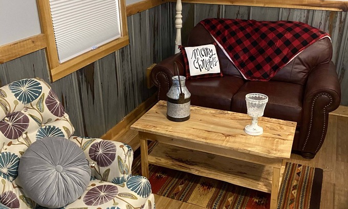 A small Cozy Cabin located in the heart of the Blue Ridge in the small town of Barnardsville, NC. Just 5 minutes from Navitat Canopy Adventure zipline is the perfect small space for a couple to get away for the weekend! Hike our mountains and come home to the cutest cabin complete with an indoor and outdoor fireplace, WiFi, and HDTV. The unit includes laundry and a unique king-size bunk! Unit and outdoor area is privately walled.