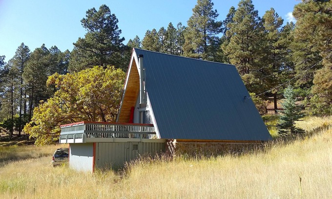 YOUR CABIN GETAWAY Less then (2) hours from Santa Fe, this vintage A frame cabin comes ready with 2 bedrooms (1 queen, 2 twins and a fold out couch, can sleep up to 5 people), fully equipped kitchen, bathroom with shower and tub, period furniture and decor, woodstove and electric heat, and a 16x16 foot front deck with beautiful mountain views. This is your getaway for all types of outdoor activity like walking to the Brazos River (8 blocks from river) touring around northern New Mexico's beautiful alpine country, visiting the many local towns, lakes, and rivers. Or the more leisurely pace of cooking a great meal, yoga on the deck, reading, writing, or just a well-earned rest.
