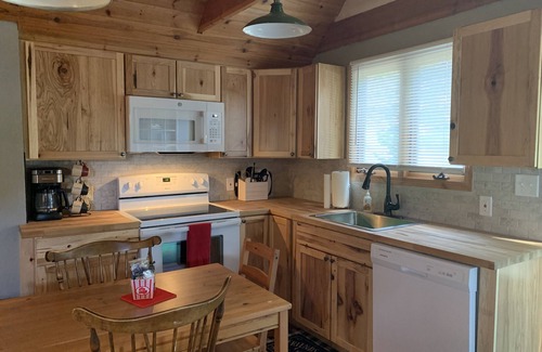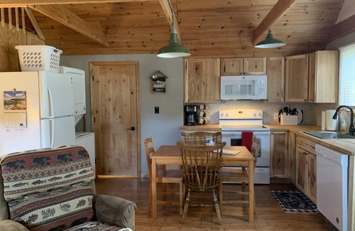 SELF/KEYLESS CHECK IN Our Cozy Cabin is 2 miles from Crystal Mountain. Our home has two bedrooms and one bath with loft area in this adorable cabin. The first bedroom has a brand new Queen bed. The second bedroom has a Twin over Full bunk. Both rooms have storage/dressers. NEWLY ADDED brand new kitchen with dishwaser and stackable full sized washer and dryer. Laundry soap provided (along with coffee, filters, toilet paper, hand soap, paper towels, dishwasher tablets, tissues).