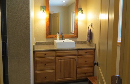 No need to rough it! This newly remodeled, beautiful, three bedroom, one bathroom apartment is conveniently next the Trinity Center General Store in downtown Trinity Center. It is centrally located, yet very private. There is room for parking boats behind the store. The apartment has high quality finishes and furnishings, including forced air heating, air conditioning, cast iron gas stove, HD TV, Blue Ray DVR, BBQ, outdoor dining, 3 queen beds. Kitchen is fully outfitted with cookware, coffee maker, blender, dishes, flatware, etc. and has all modern appliances, including microwave and dishwasher. Bathroom has waterfall shower and is stocked with towels. Beds are made with fresh linens. For up to 6 guests: Regularly $165/day & $185/day holiday. 10% discount on weekly rentals, additional $10/day charge for each guest above 6. Apartment sleeps 6-8. Rental comes with voucher for 10% off all purchases at the Trinity Center General Store good for duration of stay.