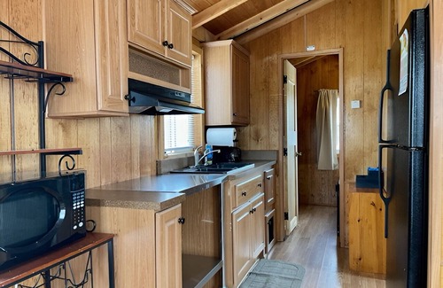 Unwind in Kemmerer at this lovely cabin. Nestled in the heart of nature, this charming property offers a cozy retreat for guests. With its fabulous one bedroom, you'll find a comfortable and inviting space to relax and recharge. The cabin is equipped with all the essentials you need for a memorable stay, including AC, heating, WiFi, and TV with steaming services. Immerse yourself in the tranquil surroundings, take a leisurely stroll through the nearby trails, or simply unwind on the porch and enjoy the breathtaking views. Enjoy your time in Kemmerer at our cabin, where relaxation and serenity await. Located across from a public fishing area, dog park, and the world famous Fossil Island Golf Course. There is also a wildlife viewing area nearby. Enjoy all that Kemmerer has to offer!