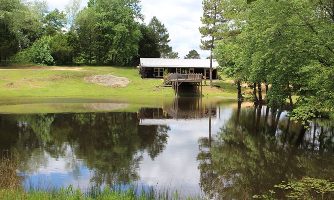 The Woods is a peaceful Cabin set back on 5 acres with its own private, fully stocked pond! Bring your fishing poles. (Catch and release only please) Soak in the luxury tub or read a good book on the front porch.