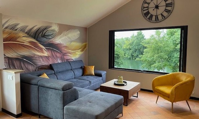 Comfort, cozy atmosphere and serenity, the chalet is designed to stay in a pleasant setting. You can also enjoy a view of the river "Le Loir" from the 27m² terrace.