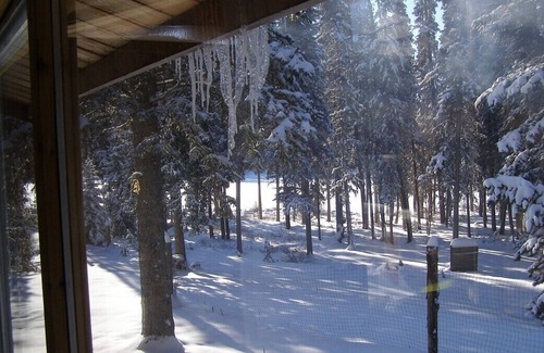 There are nice trails for walking and hiking just around the corner. Nimpo Lake is famous for rainbow trouts - there is a public boat launch and boat rental available 3 km away from the cabin. Of course you can fish from your own private dock close to the cabin.