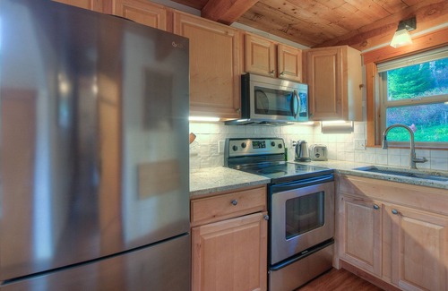 Located on a hill above the village of Eastsound, this cozy cabin features 1 bedroom, plus an upstairs sleeping loft with additional queen bed. There is a full kitchen, living room/dining area, and a washer/dryer.