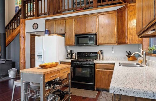 Tucked in the trees and walking distance to Lake Almanor, the Stellar J cabin offers a quiet and snowy respite in the winter and a fun and easy lake getaway in the summer. Updated and modern furniture throughout. Well-appointed kitchen with big dining table for family dinners. Outdoor eating areas. Ping-pong table, basketball hoop, two-person sit-on-top kayak, and more. Dedicated workspace with monitors, speakers, keyboard, mouse for attaching a laptop (no computer here). 10 minutes from well-stocked Chester grocery store.