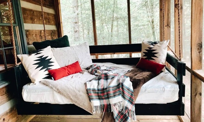 Cozy Cabin in woods with Hot Tub, Porch Swing Bed and Fire Pit in Aska Adventure | Cabin in Blue Ridge