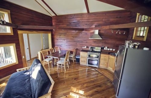 The kitchen has a full set of new kitchenmaid appliances and the cabin itself was recently renovated.