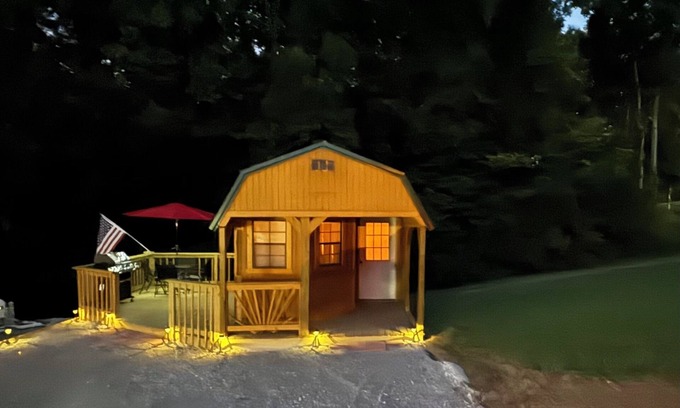 Enjoy a peaceful stay at this 1-bedroom cabin in Rocky Top. Nestled in the heart of nature, this wonderful property provides a serene escape for guests. The cozy bedroom features a comfortable king bed, ensuring a restful night's sleep. Futon bed in living space and table with 4 chairs. also, amenities like WiFi and AC, your stay will be enjoyable and convenient. The additional living room space, complete with a futon, offers a perfect spot to relax and unwind. Enjoy your private deck with new gas grill and table with 4 chairs. Fall in love with Rocky Top and enjoy the magic it has to offer.
