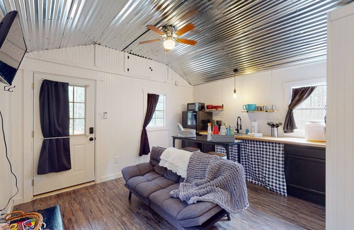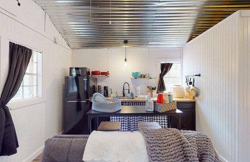 Inside, find quaint, well-decorated living quarters. With a comfy bed, a well-equipped kitchenette that includes a full sized fridge, hot plate, and slow cooker. Plus a sizable bathroom - you'll have everything you need to call this space home.