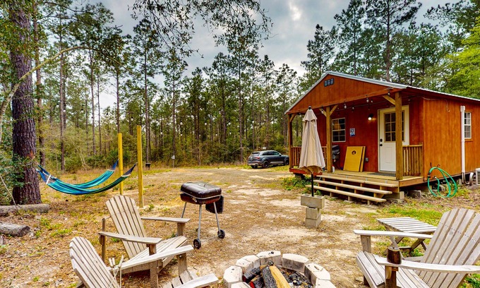 At your cozy abode, relax in the hammock with your vacation read, gather around the provided firepit, or take an invigorating dip into the outdoor shower.