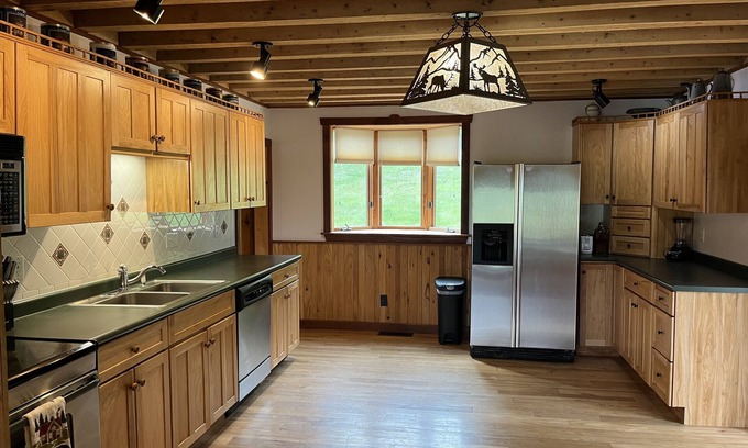 There is a spacious kitchen fully stocked with cookware and appliances (including a toaster, coffee maker, keurig, blender, and griddle). A grill and fire pit are also available for cookouts. There is a second residence located on the property that is separate from the house.