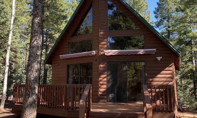 Beautiful cozy log cabin on level property tucked into the pines for peace, quiet tranquility! Get away from the noise of the city and escape to the cool mountain air that our little peace of heaven will provide. This is the place to stay for your getaway. Lots of trailer parking and an RV hookup. Nice deck with fire pit to enjoy after a long day on the trails. a short drive to Zion National Park, Bryce Canyon, Navajo Lake, Panquitch Lake, Cedar Breaks and Brian Head Resort for Summer activities. Cedar City is a 30 minute drive to additional restaurants, activities & The Shakespearean Festival. All of the amenities of home but in the mountains! Gas fireplace for cool nights or for the setting the mood for a movie or good book. Close proximity to Duck Creek Village and numerous ATV trails. Fishing, Hiking, or just relaxing on the deck after a day of riding the trails.