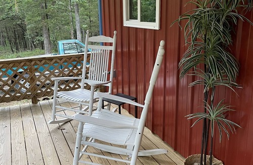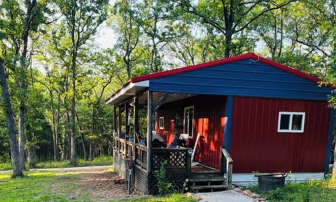 Our tiny cabin is nestled in the middle of 10 acres of woodland. We have created a true isolated get away that is just miles from restaurants, shopping, Lucas Oil Speedway, and the beautiful Pomme De Terre Lake. Our cabin is newly built and cozy with just one bedroom, one bathroom. Sleeping 4, as we have a pullout sofa. We have a large deck with 4 comfy rocking chairs, grill, firepit, outdoor shower, trails for exploring the property. (Bring your atv)