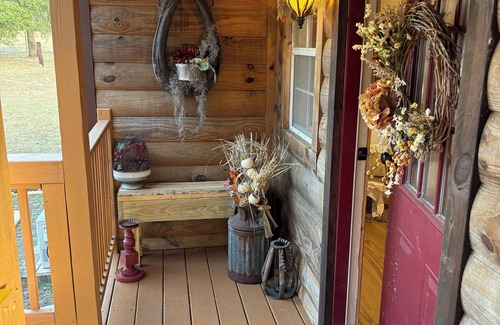 This Dunnellon log cabin boasts an adorable room with 1 queen bed a kitchen, a loft with a full size bed for your kids and a beautiful porch where you can eat your delicious breakfast as you watch our horses. The cozy interior is perfect for a tranquil getaway. Enjoy the convenience of amenities like WiFi, heating, and AC. We are located 15 min to Rainbow Springs, the most beautiful place on earth and 15 minutes to Crystle River where the manatees live. We have two kayaks and a paddle board you can use at your leisure. We also have two bikes you can use to ride the Withachoche trail which is 3 miles away. You can enjoy the pool and swings around it. We offer a homemade breakfast with our eggs and veggies from our garden. Breakfast is no longer included with your stay as to much food was waisted so if you would like a healthy homemade breakfast you can request it at $10 per person per day. We look forward to welcoming you to our place.
