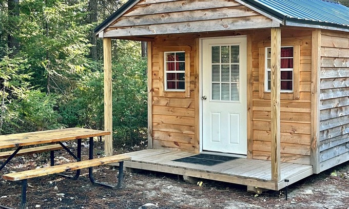 Escape to a cozy cabin on Drummond Island for an enjoyable retreat.This adorable 1-bedroom cabin features a comfortable queen bed, perfect for a relaxing night's sleep. With AC and heating, guests can stay comfortable year-round. Mini-fridge, coffee pot, and toaster. Modern bathhouse a short walk down the driveway (please note there is no water in the cabin).Bedding and towels provided for your stay. Private fire pit and peaceful surroundings make it a fantastic spot to unwind and recharge. We look forward to welcoming you to our place.