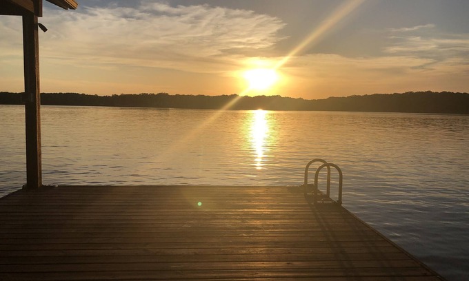 Unplug and relax in our lakeside cabin with a gently sloped back yard that takes you to a spacious covered dock with ample seating for your entire family. House includes a full outdoor kitchen with built in gas grill, fridge and seating for 6+ guests.