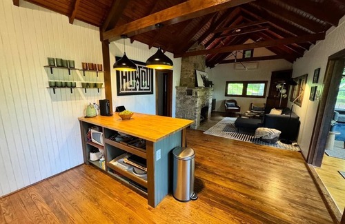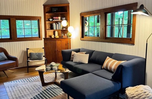 Situated on 4 acres, Riverfront sits a mere 500 feet from the South Fork of the Shenandoah River. An easy 90-min drive from DC, this pet-friendly retreat will have you relaxed in no time. A new hot tub offers views of the river where you can enjoy kayaking, canoeing, and fishing. Designed for couples or families, this private cabin boasts modern conveniences including: fast wifi, EV charger, smart home devices, flatscreen TV, drip coffee maker, spa bathrobes, and a large gas fireplace.
