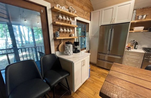 Escape to this cozy cabin on Lake Anna, perfect for families or small groups. The cabin features a loft with a king bed, two twin beds plus two private bedrooms with queen beds. Enjoy an open-concept kitchen and living area with high-end appliances and countertops, leading to a screened-in front porch overlooking the cove. A gentle slope takes you down to the water, where you’ll find a deck, floating docks, and a fire pit—perfect for lakeside relaxation.