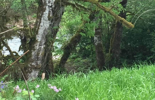 Just a short walk down the trail and your standing on the bank of the beautiful Sol Duc river. The Sol Duc river is one of the best salmon rivers on the Olympic Peninsula. This beautiful river is easily viewed from the living room and kitchen of this pan abode cabin. It's located just 5 minutes north of Forks. The scenic coastal beaches, hiking trails and the Hoh Rain Forest are only minutes away. It features one bedroom and one bathroom. There is a king bed in the bedroom and a new queen memory foam sofa bed in the living room. The bedroom and bathroom are stocked with bed linen's and towels. The kitchen is fully stocked with everything you will need including a microwave and a full sized oven. You only have to provide the food and beverages of your choice for the duration of your stay. A washer and dryer are available for your convenience. WiFi and television with YouTube tv, which provides all local channels, Netflix and Amazon Prime are provided with no added fee. There is a wood stove in the living room and firewood out back. The property also has plenty of parking for your fishing boat.