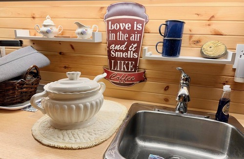 Cabin is also facilitated with a fridge, freezer, toaster over/air fryer, induction burner, a kettle, coffee press and use of the BBQ.