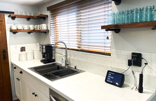 Our cozy living space is perfect for reading, snuggling in and ending a day of hiking in the forest. Books and games are available to help indulge in the comfort of the space and there is a Smart Roku TV and a Spotify Account with preset soundtracks for your cabin experience.