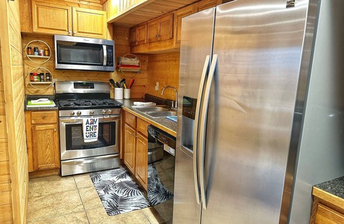 Kitchen has a large air fryer, coffee maker with reusable filter, dishwashing tablets, dish soap, new sponge, basic spices, wine glasses and openers, and nearly any utensil/pot/pan you may need to create culinary masterpieces. Laundry has tide pods and dryer sheets. Bathrooms have shampoo, conditioner, hand soap, body soap, and lotion. Vacuum cleaner available upon request, as well as a variety of other cleaning supplies. Work desk has pens, and a pad of paper.