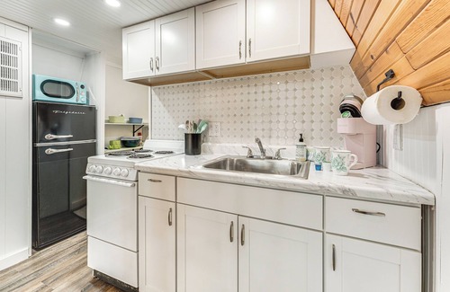 Starry nights and sunlit mornings are yours to savor at this 1-bedroom, 1-bathroom vacation rental in Lampe. Tucked away among the Ozarks, 'Groovy Pines Cabin' invites you to unwind, reconnect, and indulge in the simple joys of lake life. Ready to explore? Soak up the sunshine on Table Rock Lake or slip away to Branson for a night of shows and charming downtown strolls. Don't wait; reserve your getaway today!