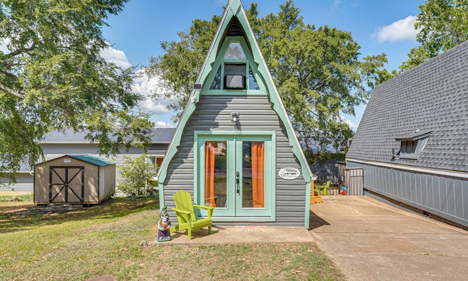 Starry nights and sunlit mornings are yours to savor at this 1-bedroom, 1-bathroom vacation rental in Lampe. Tucked away among the Ozarks, 'Groovy Pines Cabin' invites you to unwind, reconnect, and indulge in the simple joys of lake life. Ready to explore? Soak up the sunshine on Table Rock Lake or slip away to Branson for a night of shows and charming downtown strolls. Don't wait; reserve your getaway today!