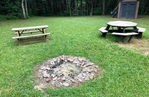 The Meadow House Cabin features one bedroom with a full bed, one full sized futon in the living room, a full mattress in the small loft (kids only) as well as a bathroom and shower and a completely furnished kitchen. Bath and bed linens are provided. Outdoor grill and fire pit are available including a firewood bundle. Enjoy the quiet and solitude of the woods and disconnect from the craziness of the outside world!