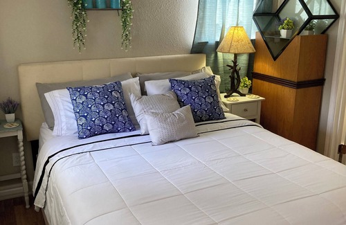 Make yourself at home in this cozy and quiet 1-bedroom retreat. Nestled in the charming coves of Lake Whitney, this cabin offers a soothing ambiance that will instantly put guests at ease. With AC, bathroom with shower, TV, microwave, mini fridge, dishes, coffee, creamer, sugar, coffee maker, towels and and linens you have all the comforts of home! The gorgeous bedroom provides a cozy haven for a restful night's sleep. Very quiet, safe neighborhood ! There is a short path directly to the waters edge on the property . The perfect spot for some private fishing or a picnic! Whether you're seeking a peaceful getaway or an adventurous escape, our place is the perfect base for your vacation. McGown State Park is just 3 miles away and has many hiking trails, swimming area and boat launch ramps. Explore the wonders of Whitney and create unforgettable memories during your stay at our cabin. You're sure to make fantastic memories with a stay at our place.