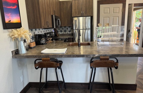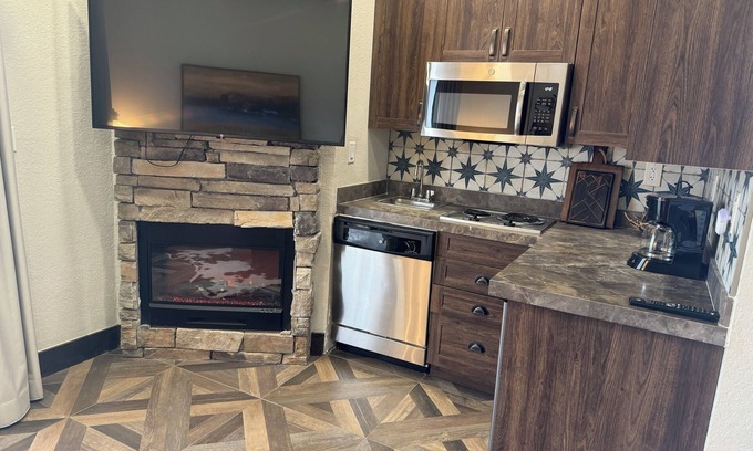- Family Deluxe Lodge Suite: full kitchen + arcade + walk to pool and rodeo