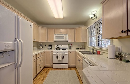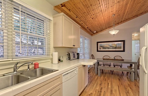 There are 2 bedrooms (king and queen beds) each with its own bath, a deck with ample seating, a fully stocked kitchen, plus a fireplace, grill, and a garage/rec room with a pool table, cornhole, darts, and couches. We've got plenty of games and books, too.