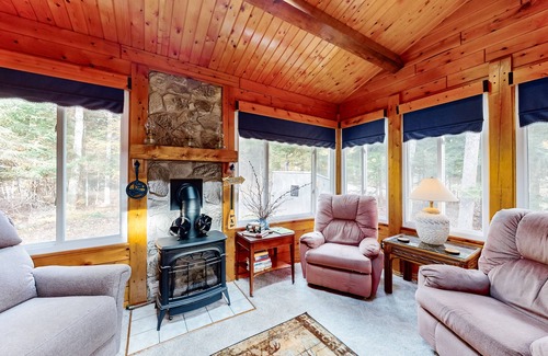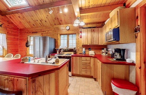 Cozy cabin with covered porch, firepit, grill, fireplace, & washer/dryer is located in Beaver Cove. Cozy cabin with covered porch, firepit, grill, fireplace, & washer/dryer provides accommodation, featuring Parking, TV, Security/Safety, among other amenities. This House features Parking, TV, Security/Safety, to make your stay a comfortable one.