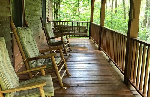The cabin is perfect for those looking for a quiet & cozy mountain getaway. This 2 bedroom, 2 bath cabin has a fireplace and pullout (queen size) sofa in the main living room as well as an upstairs loft area that has a pullout (queen size) sofa. You can relax in the rocking chairs or swing on the front porch. The back porch has a grill for you to enjoy a picnic on the deck. Cabin has AC, free Wifi & a television.