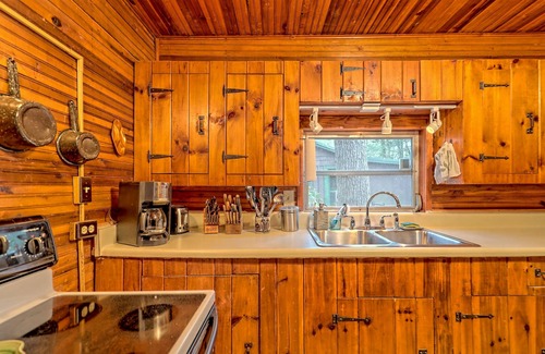 Although just off highway 76, the cabin and its neighbors are adjacent to a large area of national forest. That plus being so close to the lake means abundant wildlife, including the occasional bear and bobcat. For this reason, we ask that no trash be left outside or inside screen porch.