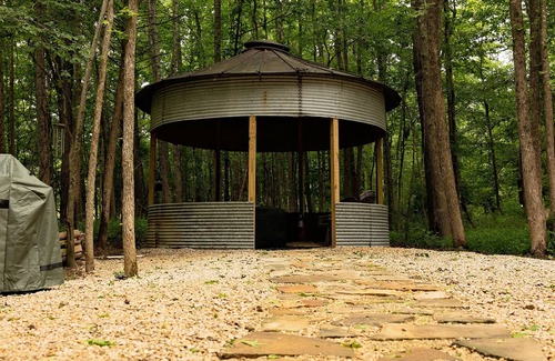 Step outside to your own private oasis with a creekside view, where mornings start with birdsong and evenings end beneath a blanket of stars. Soak in the panoramic views from the covered porch, or unwind under the old grain silo at our covered fire pit area, complete with a 4-person hot tub. Inside, treat yourself to a relaxing soak in the indoor glass front jetted corner tub.