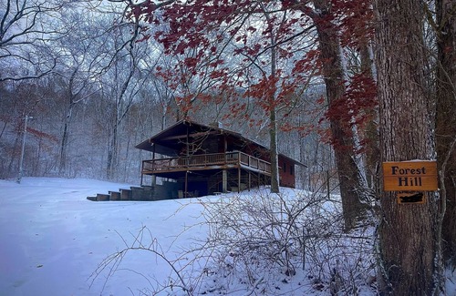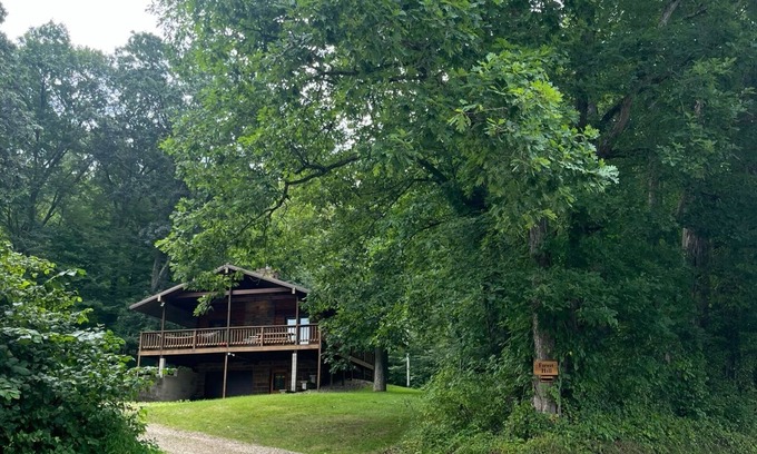 This beautiful cabin is tucked in on a wooded hillside, very private, cozy and comfortable with beautiful scenery all around.